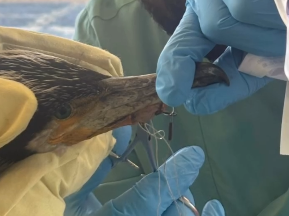 Zogut të detit të plagosur i kishte ngecur në sqep një grep i trefishtë peshkimi dhe siç duket prej dhimbjeve u paraqit në spital. Një dëmtim i tillë është mjaft i rrezikshëm për zogjtë dhe shkakton dhimbje të forta, infeksione dhe madje edhe ngordhjen e tyre, pasi ka vështirësi në të ngrënë dhe mund t'i duhen ditë për t'u rikuperuar.