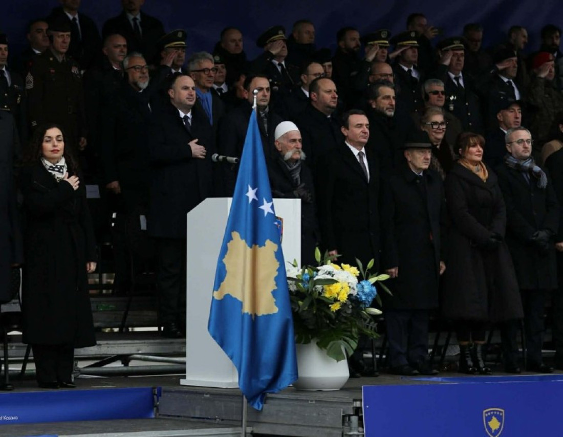 Në sheshin kryesor të Prishtinës festimet vijuan sipas planit, me parakalimin e ushtarëve, efektivëve dhe mjeteve të FSK-së, ndërsa mijëra qytetarët ndoqën nga afër aktivitetet zyrtare.