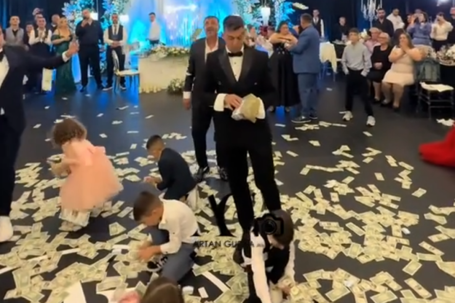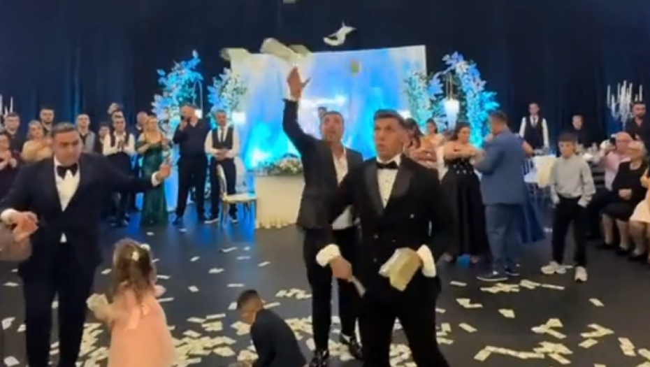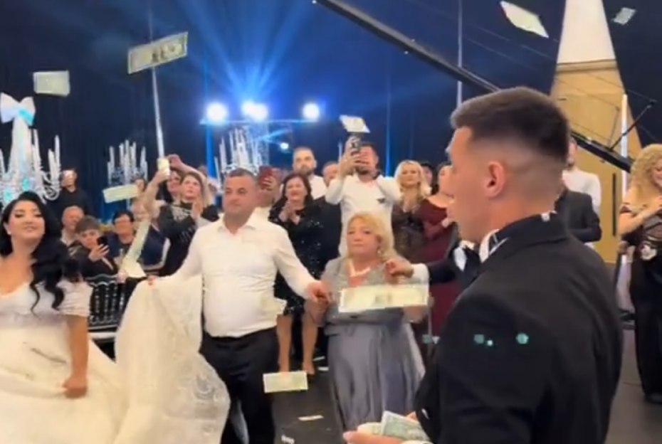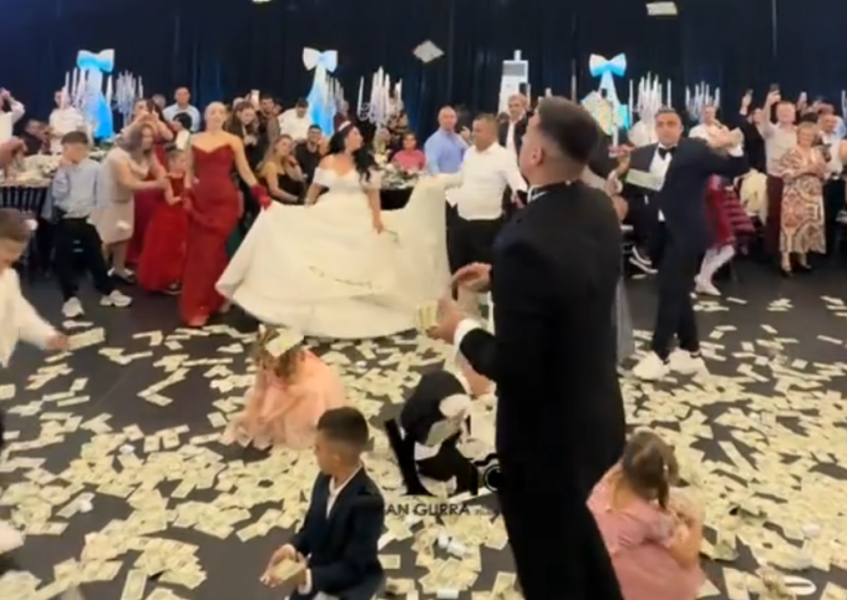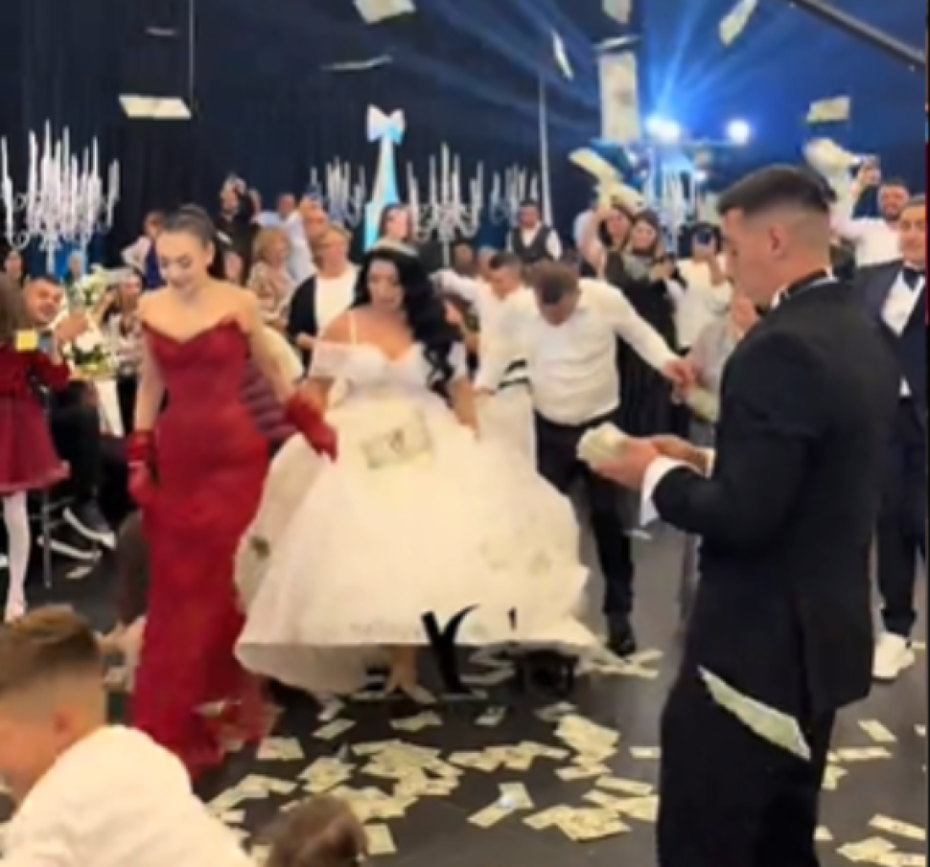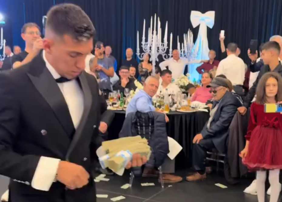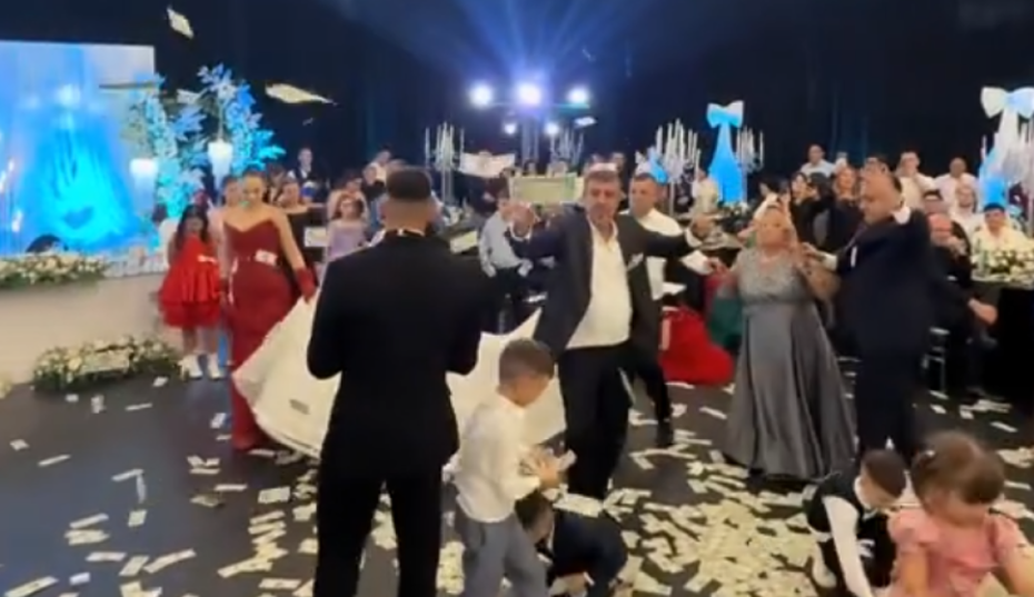 Salla është mbushur me energji, muzikë dhe festë, ndërsa Uzuni duket se nuk është kursyer aspak në këtë ditë kaq të rëndësishme për familjen e tij, pasi në videot që po bëjnë xhiron e rrjetit, futbollisti shihet me disa tufa me para në duar, duke i hedhur ato mbi çiftin në pistën e kërcimit.
