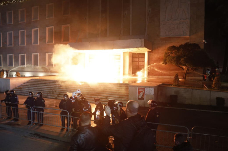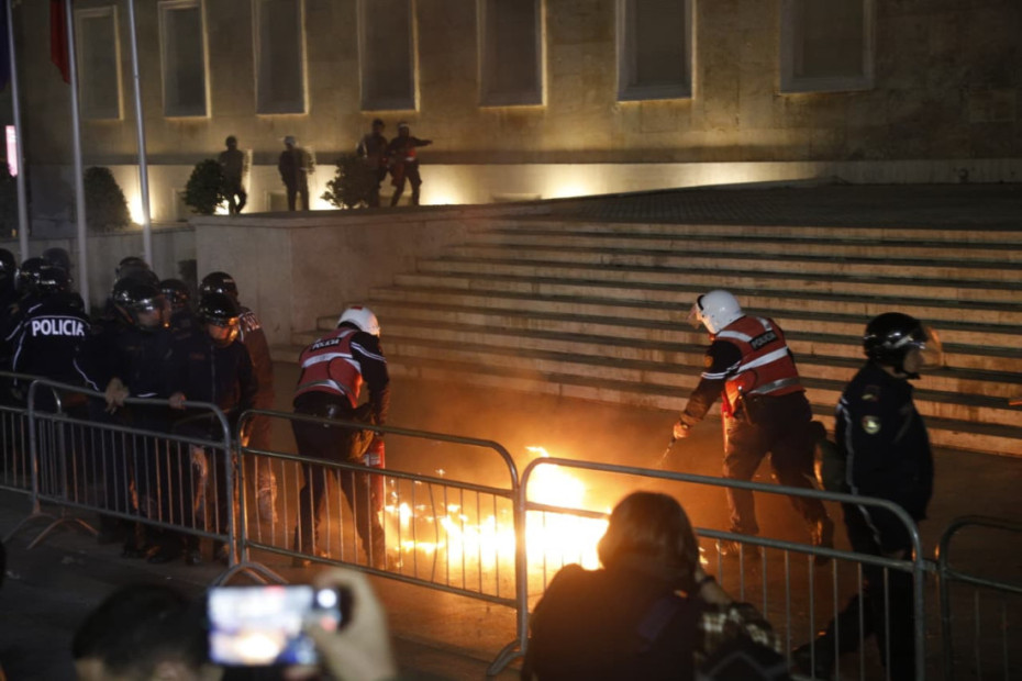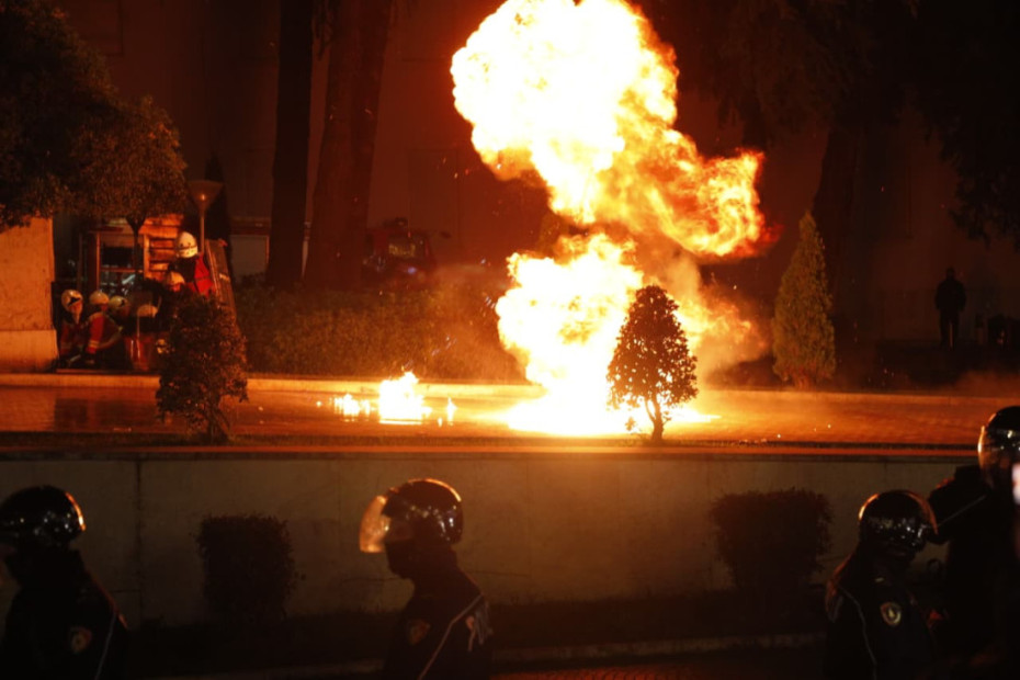 Menjëherë pas përfundimit të fjalës së kreut demokrat, protestuesit hodhën molotov në drejtim të kryeministrisë për disa minuta.