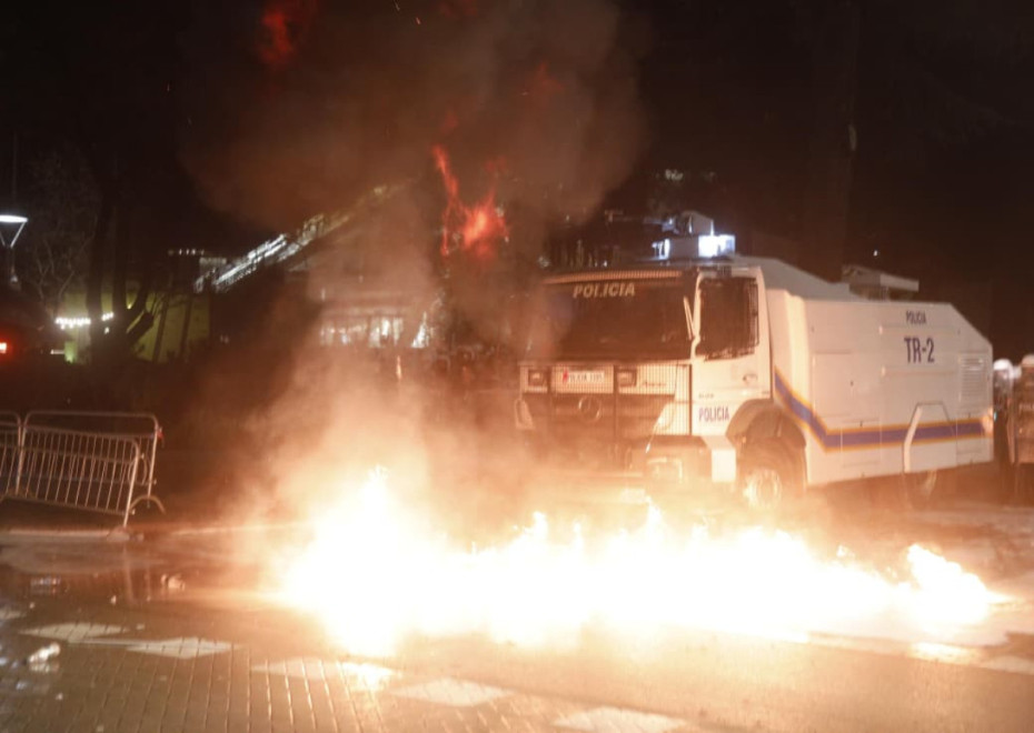 Ora 19:30 - Tensionohet situata, molotv dhe fishekzjarrë ndaj Kryeministrisë, policia përgjigjet me ujë me presion