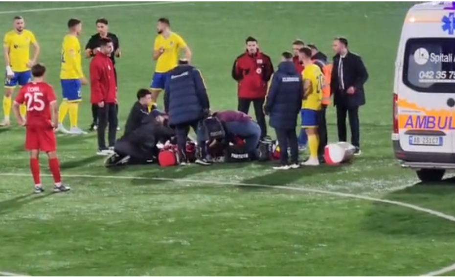 Panik në ndeshjen Partizani-Elbasani, futbollisti bie pa ndjenja në fushë, hyn ambulanca
