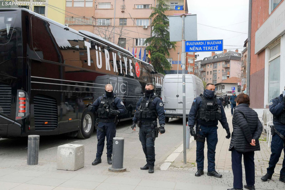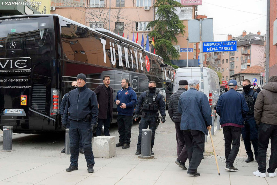 Tifozët e Kosovës kanë hedhur fishekzjarrë gjatë natës në hotelin ku qëndron kombëtarja e Turqisë, në një atmosferë të zjarrtë përpara përballjes që vlen botërorin.