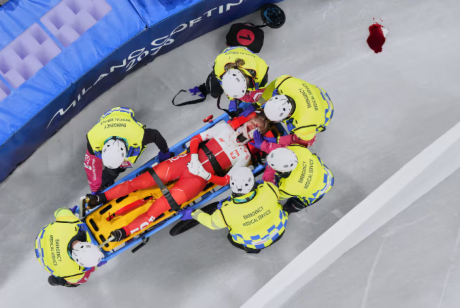 Patinatorja polake u trajtua menjëherë në pistën e akullt nga mjekët, pas një çarçafi të bardhë dhe u nxor nga aty me barelë për t’u dërguar në spital.