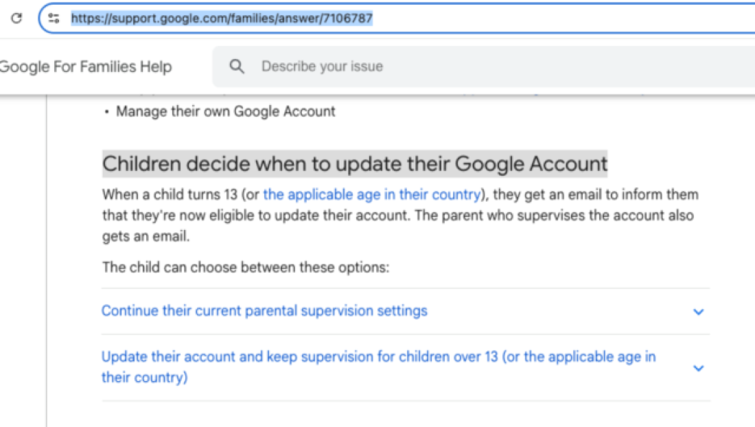 Sipas politikës së re, adoleshentët nuk do të kenë nevojë për miratimin e prindërve gjatë menaxhimit të llogarive të tyre. Kjo masë e re do të hyjë në fuqi globalisht këtë javë. Kate Charlet, drejtuese globale për privatësinë dhe sigurinë te Google, tha se ky ndryshim siguron që mbrojtjet të qëndrojnë në fuqi, deri sa prindi dhe fëmija të jenë gati për fazën tjetër.